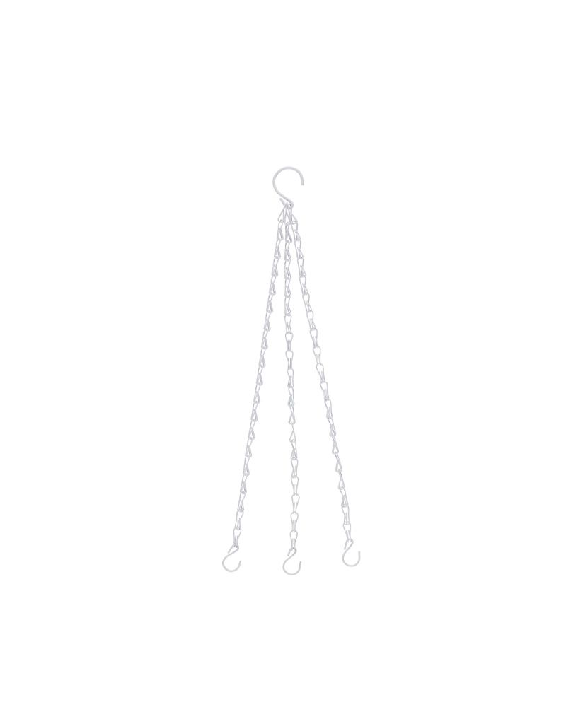 Kolmihaarainen metallinen ketju sopii erityisesti amppeleille, mutta se soveltuu myös lyhdyille tai muuhun ripustuskäyttöön. Ketjun väri on valkoinen ja sen pituus on 40 cm.