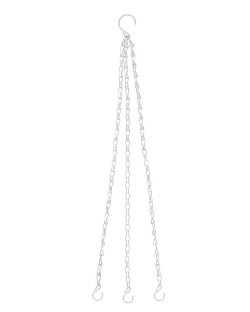 Kolmihaarainen metallinen ketju sopii erityisesti amppeleille, mutta se soveltuu myös lyhdyille tai muuhun ripustuskäyttöön. Ketjun väri on valkoinen ja sen pituus on 60 cm.