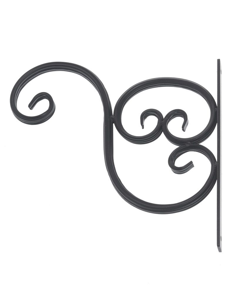 Koristeellinen metallinen seinälle kiinnitettävä koukku. Sopii niin amppeleiden kuin lyhtyjenkin pidikkeeksi. Valmistettu metallista, väri musta. Koukun korkeus on 22,5 cm ja syvyys 24 cm. Koukun maksimikuorma 12 kg.