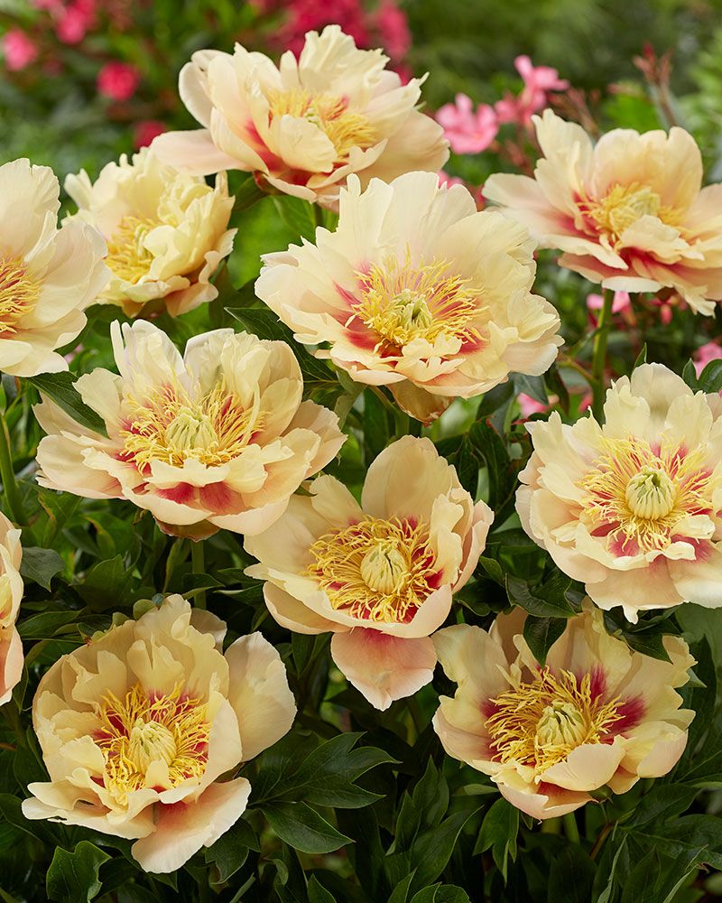 Jokaisen verson päähän kehittyy kukka. Versoja ilmestyy maasta pitkin kesää joten kukinta-aika on pitkä. Koska Itoh-pionien varsi on kova, ne eivät kaipaa tuentaa. Pionit viihtyvät parhaiten saadessaan olla samalla kasvupaikalla jopa vuosikymmeniä. Pionit ovat myrkyllisiä, mutta pienen määrän syöminen aiheuttaa harvoin oireita.