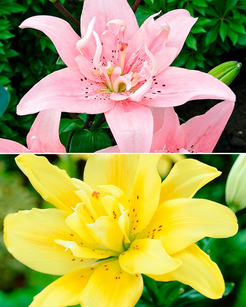 Pakkaus sisältää yhteensä 6 sipulia: 3 kpl ´Elodie´- ja 3 kpl ´Fata Morgana´ -liljoja.