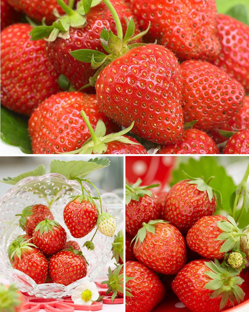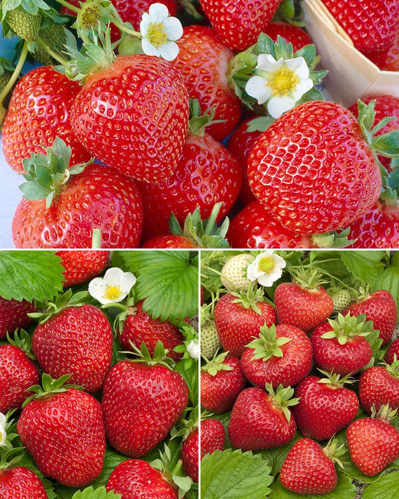 Pakkaus sisältää yhteensä 9 paakkutainta: 3 kpl 'Kaunotar'-, 3 kpl 'Korona'- ja 3 kpl 'Malwina'-mansikoita.