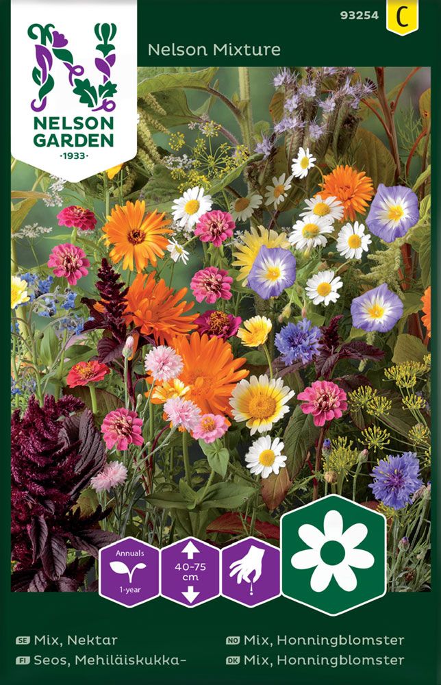 Lajitelman kauniisti kukkivat lajikkeet houkuttelevat mehiläisiä ja muita pölyttäjiä, jotka takaavat runsaan sadon hedelmäpuille ja muille puutarhan hyötykasveille. Seoksessa mm. reseda, kurkkuyrtti, aitohunajakukka ja maloppi. Kasvukorkeus 40-75 cm. Suorakylvö. Yksivuotinen. Siemenpussista löydät selkeät kylvö- ja viljelyohjeet.