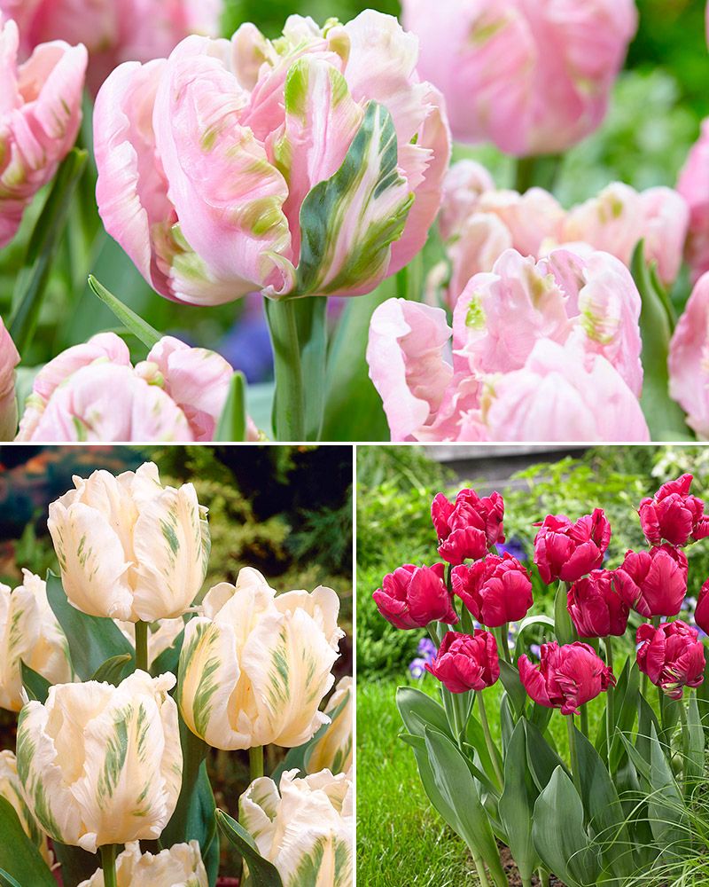 Pakkaus sisältää yhteensä 30 sipulia, 10 kpl ´Air´, 10 kpl ´Madonna´ ja 10 kpl ´Cerise Parrot´ -papukaijatulppaania.