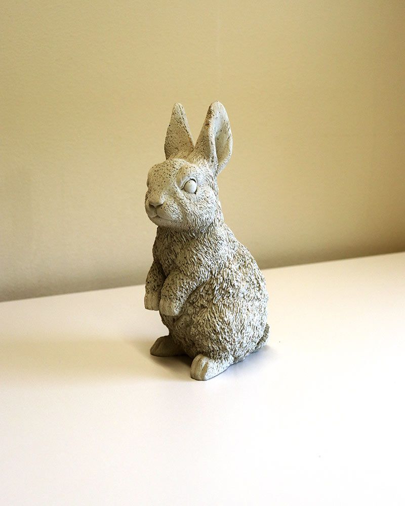 Betonista valettu pupupatsas sopii monenlaiseen tyyliin ja erilaisiin puutarhoihin. Kotimaisen perheyrityksen, Simolan PatsasValimon valmistamat betonipatsaat on suunniteltu ulkokäyttöön ja ne kestävät hyvin säänvaihteluita. Betoni on vahvaa ja se kestää sadetta ja aurinkoa, betonipatsaat sopivat ympäri vuoden ulos pihoille ja puutarhaan. Pupun korkeus on noin 22 cm, leveys 11 cm.