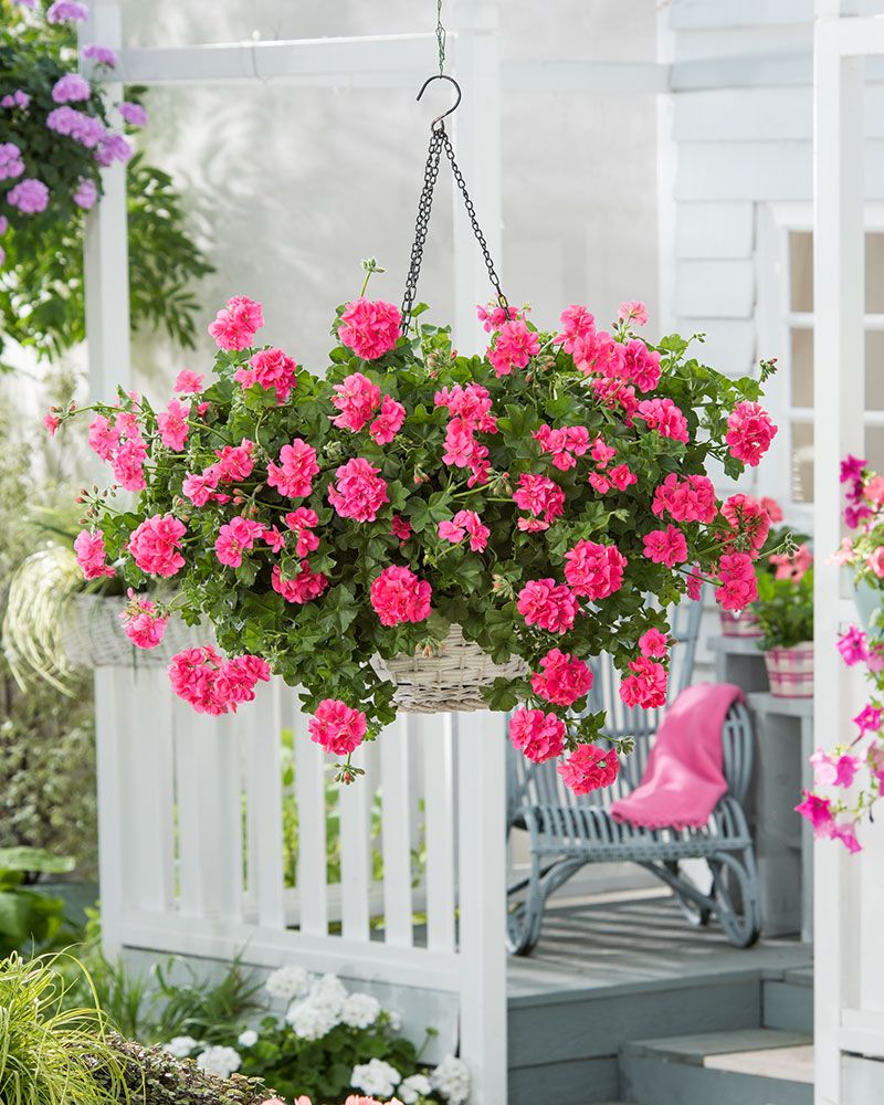 Riippapelargoni on helpoimpia amppelikukkia. Aurinkoisella paikalla se kukkii todella runsaasti ja viihtyy mainiosti vaikkapa paahteisella parvekkeellakin. Kukkineet kukkavarret on helppo poistaa. Kauniskasvuisen Sunflair Linda PInk -lajikkeen kirkkaanpinkit ja kerratut kukat tekevät kukinnoista täyteläisen muhkeita.