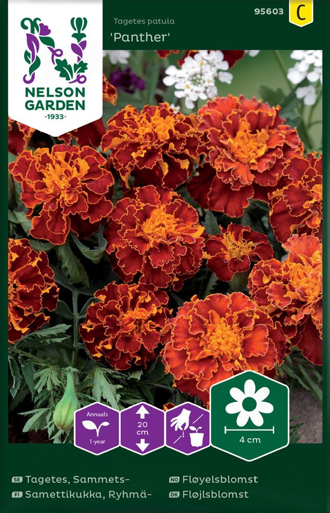 Panther-lajikkeen erittäin runsas, kauniin punaoranssi kukinta jatkuu koko kesän. Sopii kukkaryhmiin, parvekelaatikoihin ja ruukkuistutuksiin. Kasvukorkeus n. 20 cm. Voidaan esikasvattaa. Yksivuotinen. Siemenpussista löydät selkeät kylvö- ja viljelyohjeet.