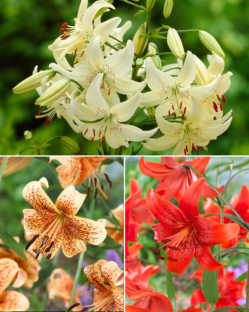 Pakkaus sisältää yhteensä 15 sipulia: 5 kpl ´Sweet Surrender´ -, 5 kpl ´Tiger Babies´ - ja 5 kpl ´Red Life´ -tiikerililjoja. Sipulikoko 12/14.