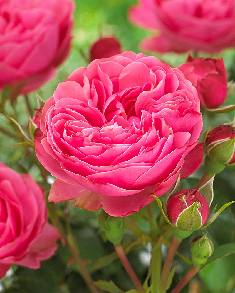 Vuoden 2019 Viherpeukalot-ruusu kukoistaa pinkin värisin kukinnoin. Suurehkot kukat ovat voimakkaasti kerratut ja tuoksuvat miedosti.